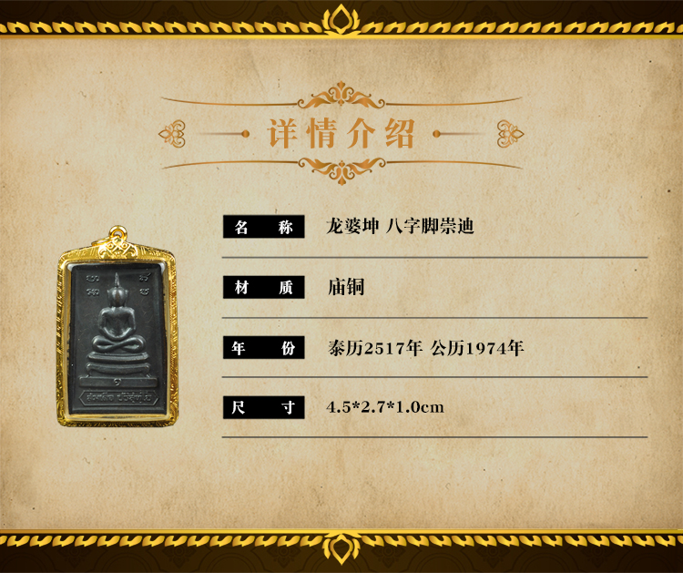 龙婆坤一期八字脚崇迪 红铜版 佛历2517年